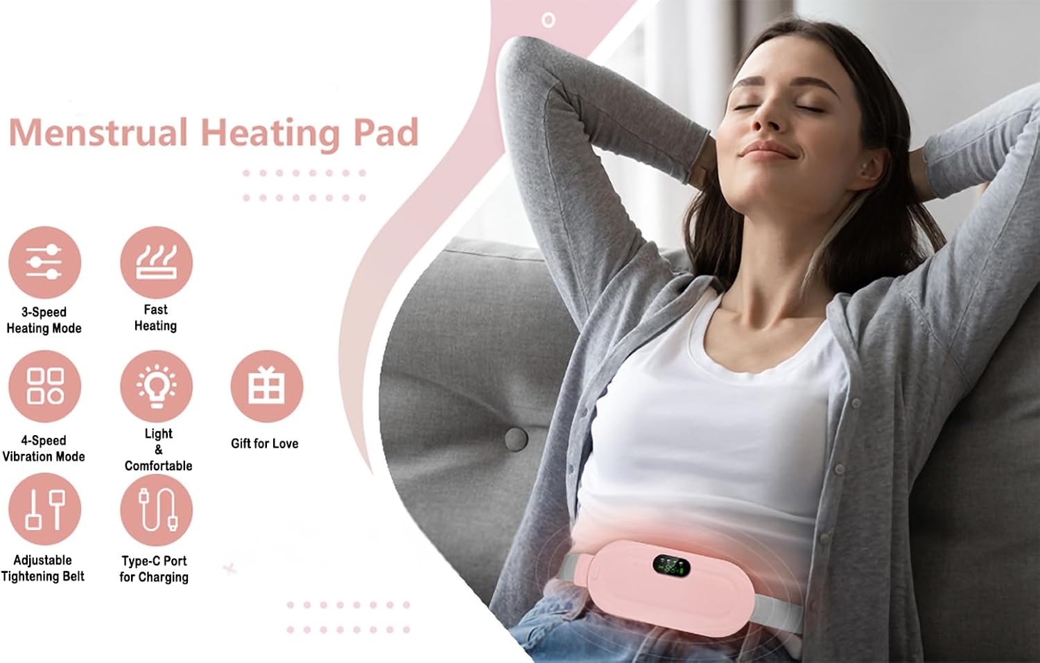 The Multi-Function Heating Pad warms up in a swift 3 seconds, achieving 60°C (140°F) in just 5 minutes. It's crafted to provide comfort to the uterus, waist, and stomach, easing menstrual pain, backaches, and cramps. With three heat and four massage settings, each function can be used independently or together, customizable via the display screen. For safety, it features automatic shutoff after 30 minutes to prevent overheating, especially during sleep.